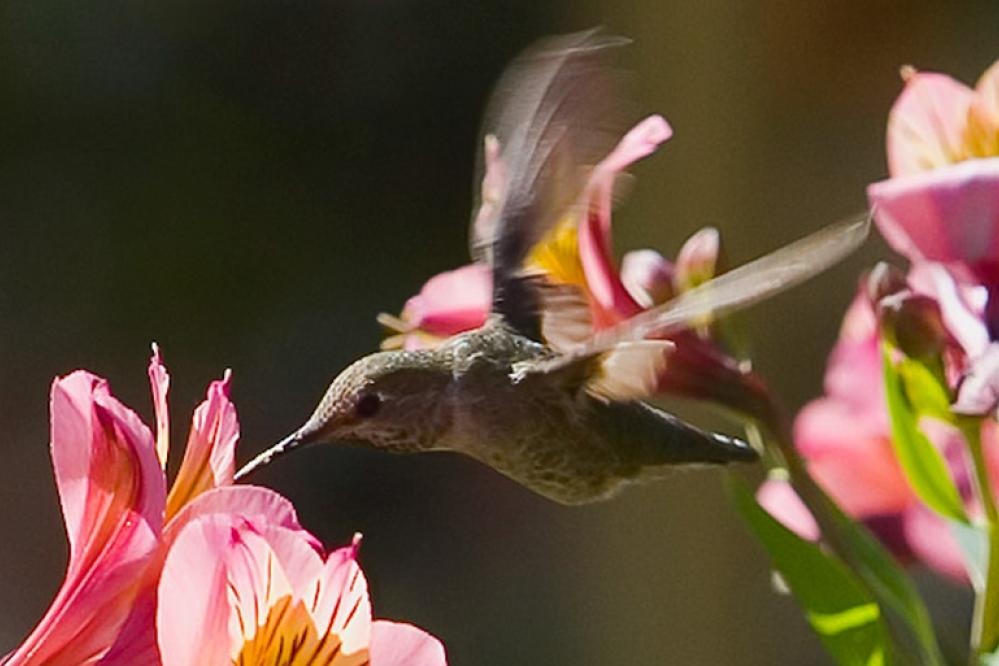 Heart racing! At rest, the Anna’s hummingbird’s heart beats 250 times per minute, but while active in flight, it can beat up to 1200 times per minute! Compare that to humans, who have a resting heart rate of 60-100 beats per minute and an active heart rate of 200 beats per minute or less.