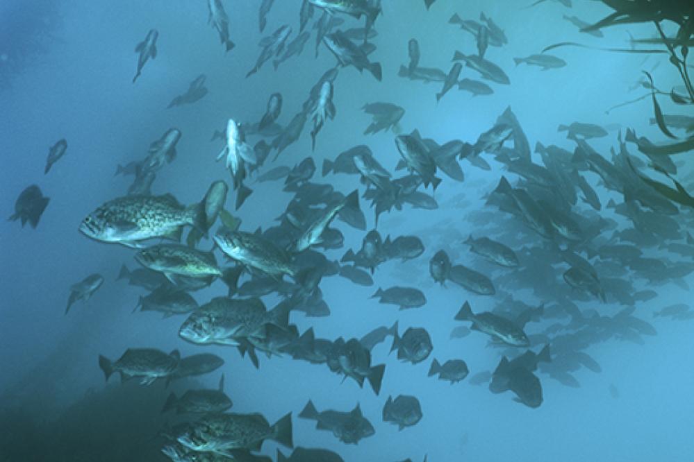 Lives under kelp beds where it swims in schools, which can churn up the water when feeding. If it avoids becoming a meal for larger fish (or humans!) it can live up to 44 years.