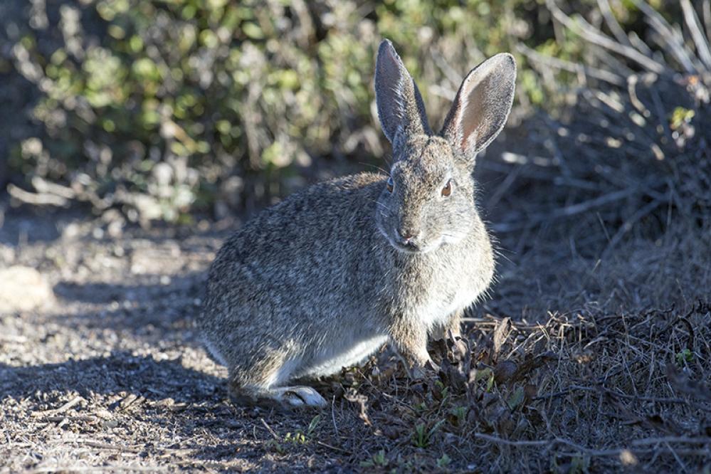 Small (up to 38 cm/15 in in length) grayish brown mammal with a white belly and round, white “cotton” tail. It is common prey for larger predatory mammals and birds.