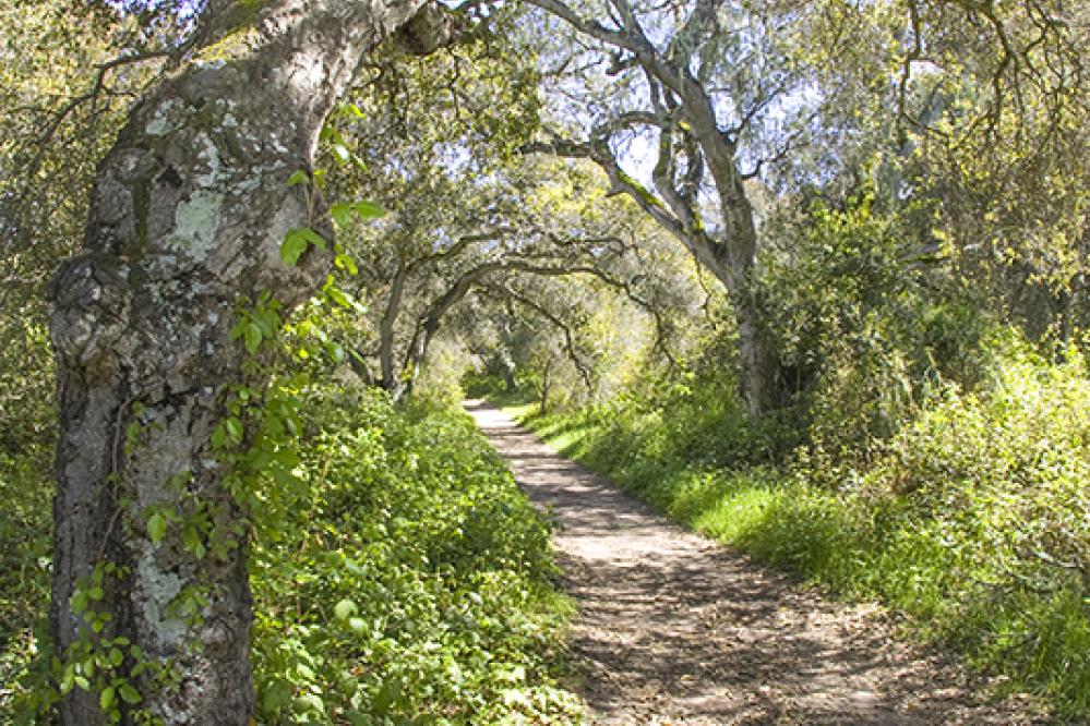 Coast live oaks thrive on the well-drained soils of coastal plains, though not on the immediate shore. They are the most characteristic tree within a fifty-mile-wide swath from the ocean across the Inner Coast Ranges, where climate is mild and fog is common. Robert Louis Stevenson described the dense coast live oak forests around Monterey as “woods for murderers to crawl among.” Be that as it may, they are as much a part of western California as are its golden hills.