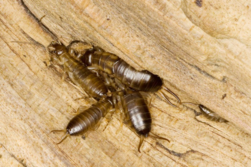Medium-sized (up to 20 mm in length) insect with a reddish head and white or brown body that survives by feeding on damp, rotting wood. This termite species is one of the largest in North America.