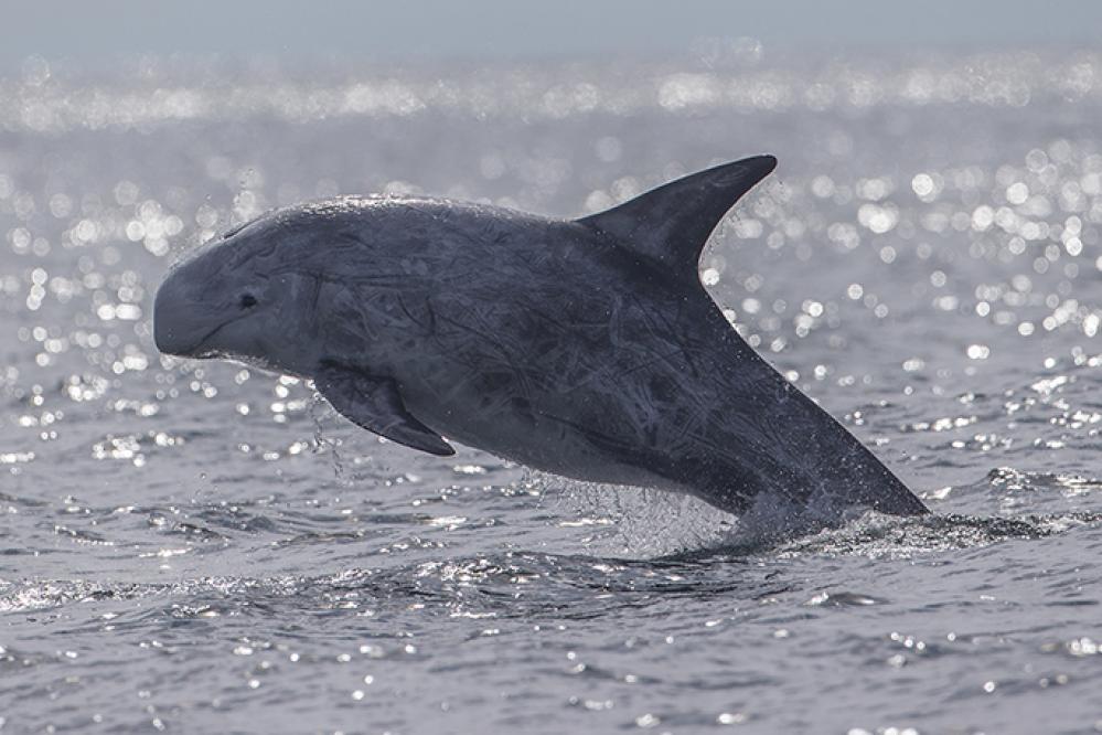 Other dolphins seen in the Monterey Bay include the long-beaked common dolphin (Lagenorhynchus obliquidens), a fast and energetic dolphin commonly seen breaching and somersaulting, the bottlenose dolphin (Tursiops truncatus) travelling just outside the breakers along sandy beaches, and the Dall’s porpoise (Phocoenoides dalli) that sometimes produces a “rooster tail” of water spray that is unique to this species.
