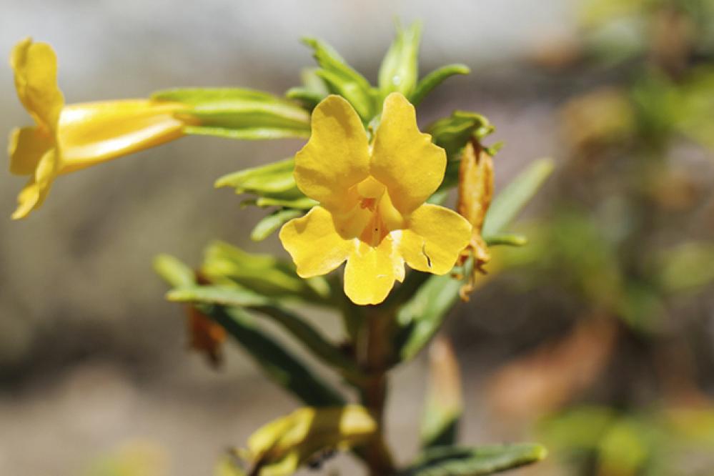 Bright yellow-orange flower named for its sticky leaves and blossom that resembles a grinning monkey face.