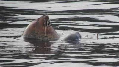 Harbor seal and pup reunited at Whalers Cove