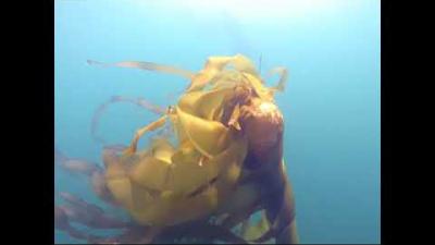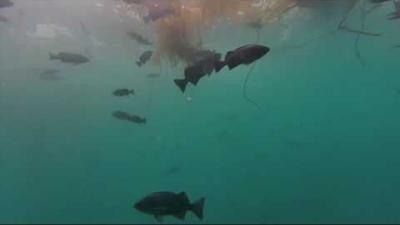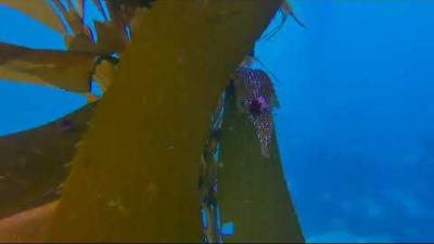 Blue rockfish under the giant kelp canopy at Whalers Cove